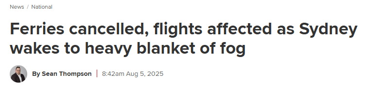这也符合最近悉尼多变的天气,别说浓雾锁城了,就连各种极端恶劣天气都频繁出现。