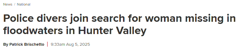 上周末,两名中国女子澳洲探亲时遭遇突然遭遇洪水,其中一名27岁女子已经获救,另外一名26岁女子至今下落不明。