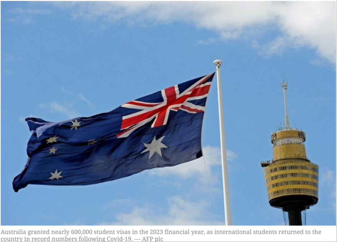 澳洲在2023财年共发放近60万份学生签证,创下新高,显示国际学生在新冠疫情后大规模回流。