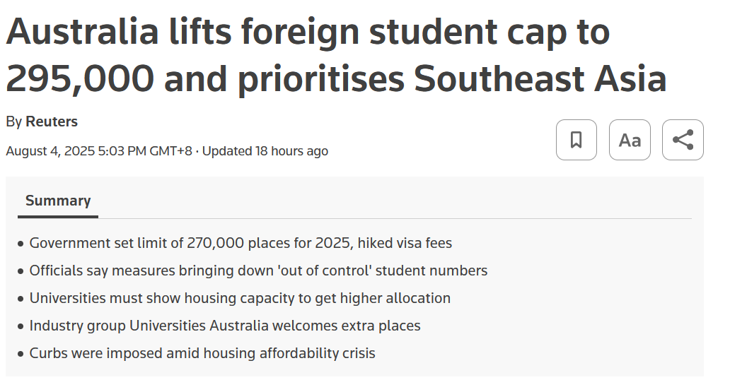 此次配额上涨发出了明确的信号,澳洲继续需要学生带来的经济和劳动力。