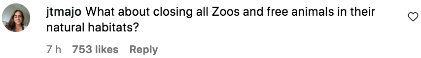 “呵呵不如直接关了动物园,把动物全放生到大自然?”