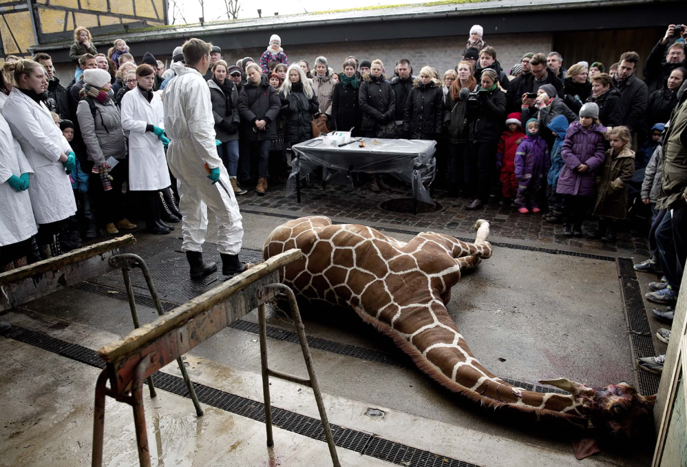 2014年,哥本哈根动物园曾不顾民众抗议,安乐死了一头健康的长颈鹿马里乌斯(Marius),理由是避免近亲繁殖。马里乌斯的尸体被部分用于研究,部分喂给了狮子、老虎和豹子,引发全球哗然。