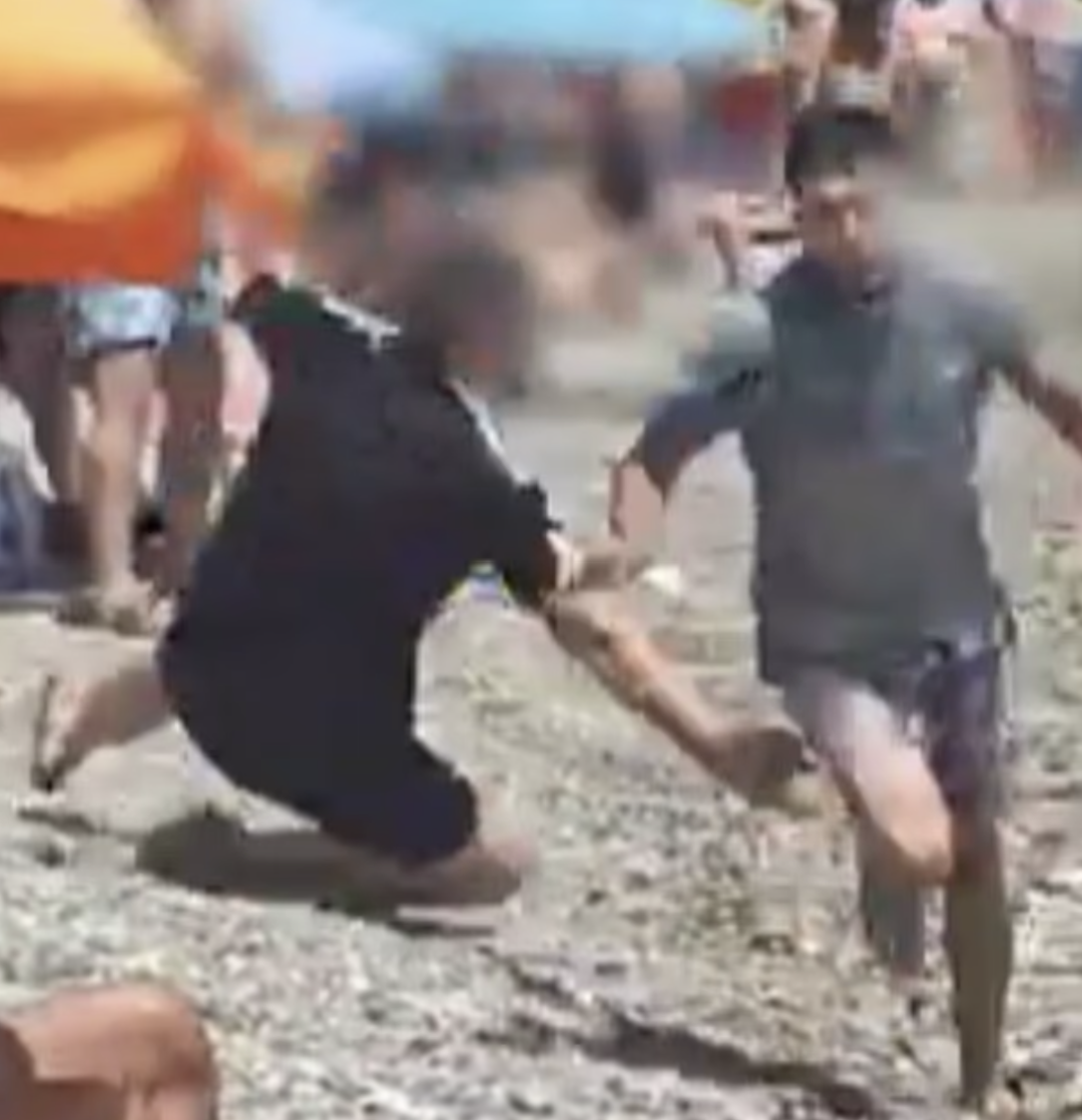 据目击者称,约13名男子跳下船后,有的向人群中混入,有的沿海滩奔逃。然而,一些游客选择挺身而出,追逐并制服了部分偷渡者。