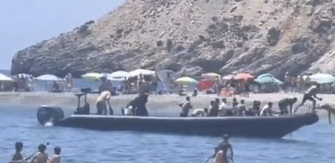 近日,西班牙南部格拉纳达省的索蒂略海滩(Sotillo Beach)上人声鼎沸,游客们正在享受悠闲假期。然而,一艘高速小艇突然闯入人群视野,船上挤满了年轻男子,他们跃入海中、冲上海滩、拔腿狂奔,震惊了在场所有人。