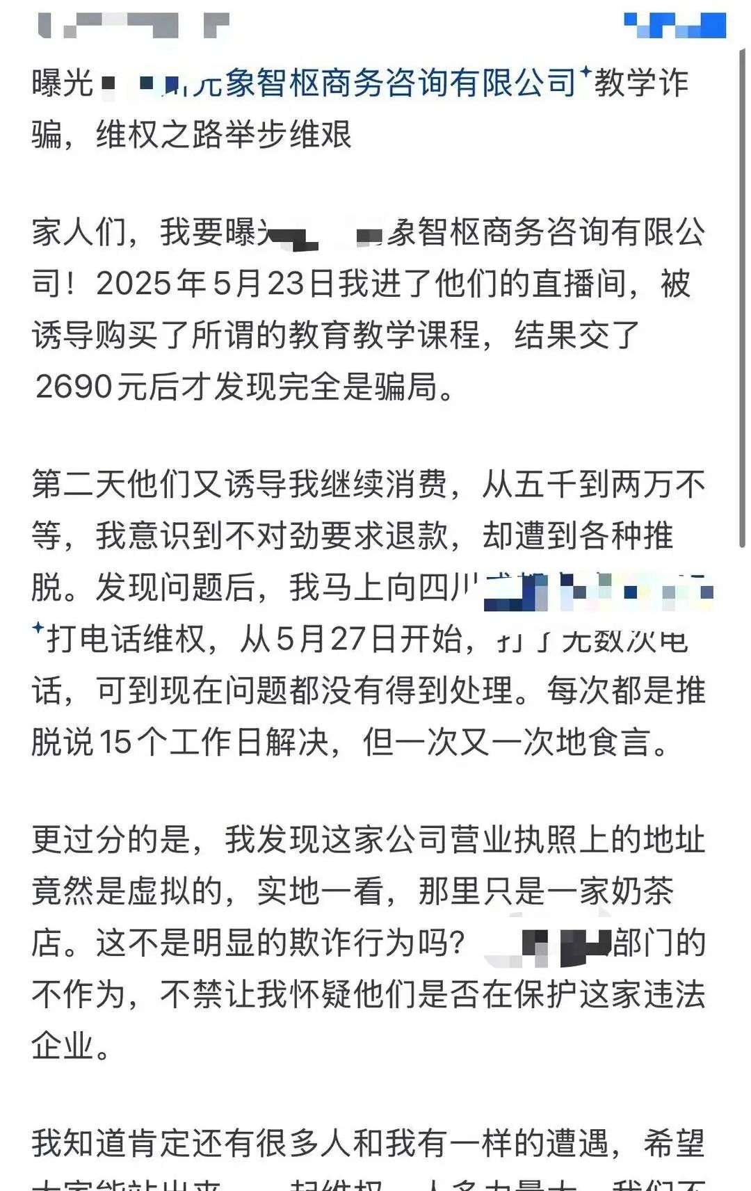 记者注意到,李女士所描述的情况,还有不少人也反映过。其中,有网友投诉,在这家公司签订带货协议缴费后,宣传广告提到在第五阶段带货的利润会翻倍,“但交完钱之后发现必须是个体户或企业才能达到这个预期,个人店铺做不到,升级个体户还得再交钱,费用5880-19880不等。”有网友表示,自己一步步“投钱”过后,发现个人达不到预期就不想学了,申请退费,该公司回复是因个人原因退费,只能退10%的费用。