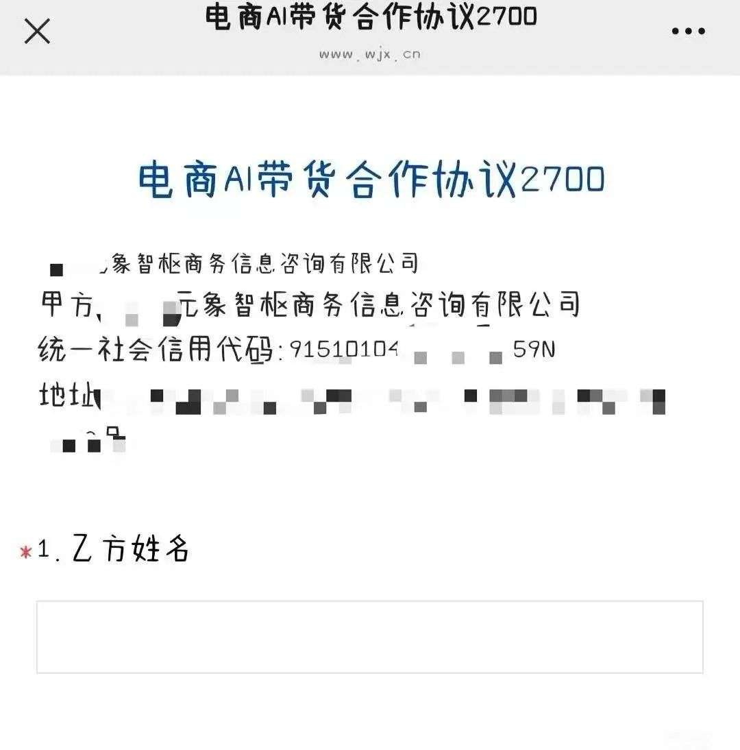 李女士说,家里74岁的爷爷签的是一份名为“电商AI带货”的协议,甲方是注册在四川的一家商务信息咨询公司。