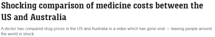 “天啊!这也太疯狂了。在澳洲,政府承担了大部分药品费用,而在美国,一切靠自己。”