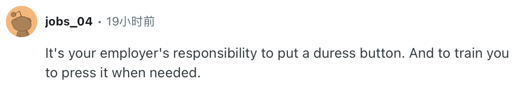“你的雇主有责任安装紧急报警按钮,并且要对你进行相关培训,让你在需要的时候知道该按下它。”