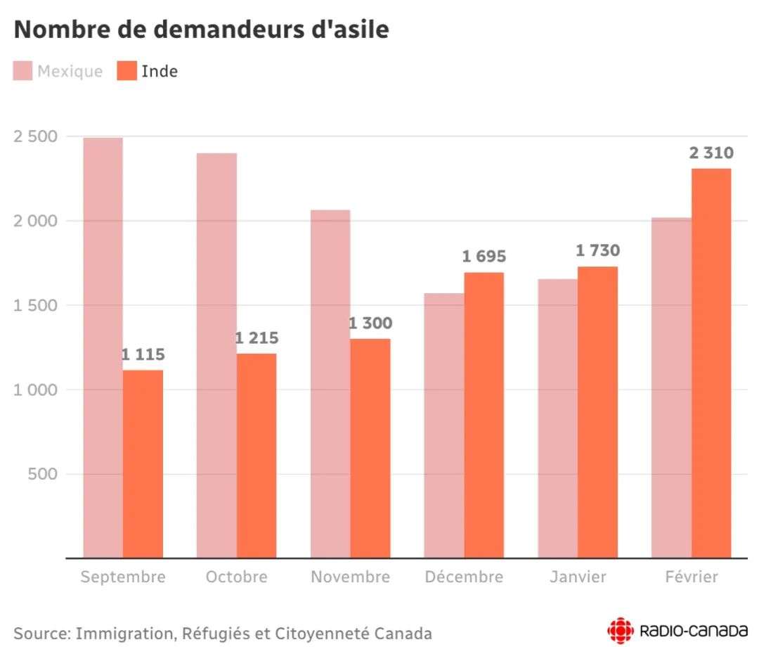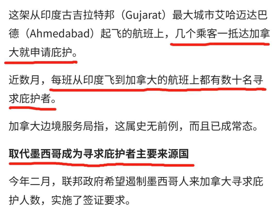 加拿大国际广播电台报道称,“每班从印度飞到加拿大的航班上,都有数十名寻求庇护者”。