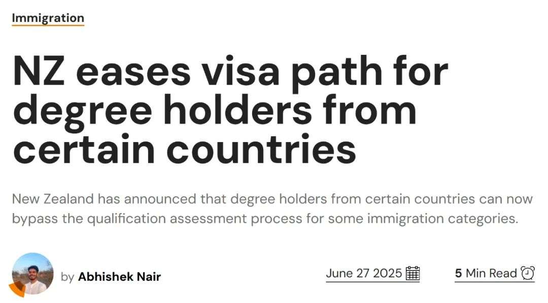 而在2025年6月,新西兰移民局为简化移民流程,免除了部分国家的学位评估,其中包括印度。