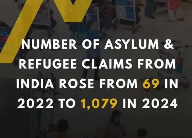 来自印度的庇护和难民申请数量从2022年的69宗,激增至2024年的1079宗。