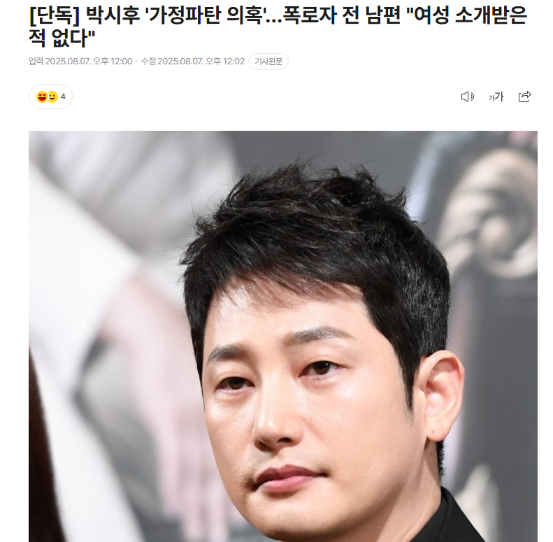 A某前夫还表示自己和A某六年前就已经离婚:“朴施厚与我们家庭毫无关联,前妻发布这种文章似乎是为了索要钱财”、“前妻在旅行期间擅闯住宅,拿走了我的工作手机、护照、现金和珠宝等物品,公开了其中的信息”。