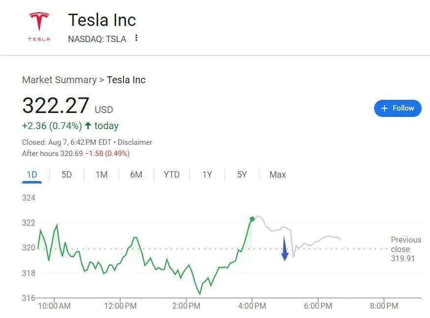 Dojo团队被解散的消息传出后,盘后转跌的特斯拉股价跌幅扩大,一度跌近1%。