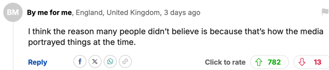 “我认为很多人不相信的原因是当时媒体就是这样报道的。”