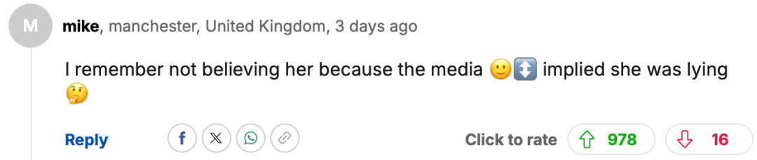 “我记得我当时不相信她,因为媒体暗示她在撒谎。”
