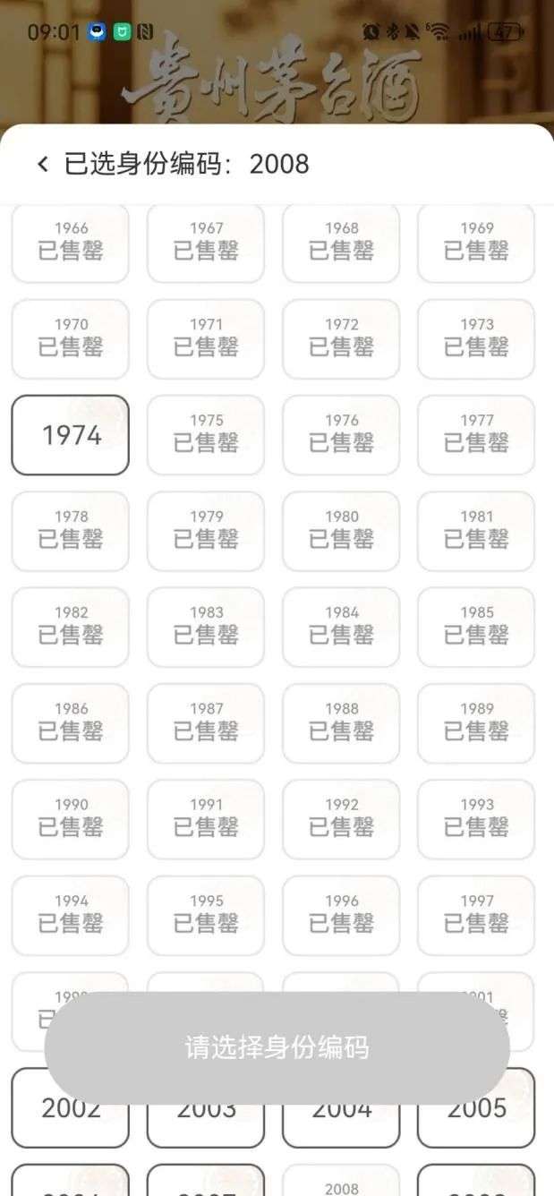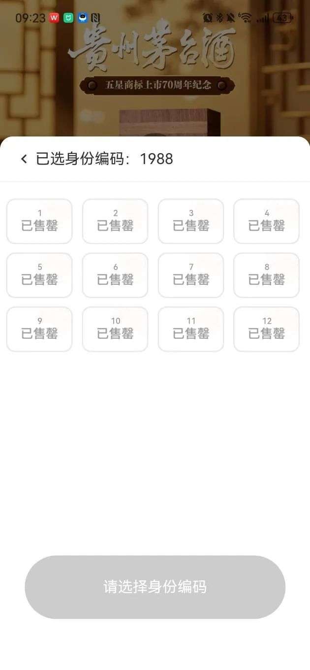 记者在产品结算页面看到,消费者可以自主选择想申购的产品号码,每位用户只能成功付款一个身份编码商品。部分年份的产品,如1966年、1988年、2000年上线即售罄。第一次显示全部售罄时间大约为9:02,部分年份的产品存在少数回流情况。