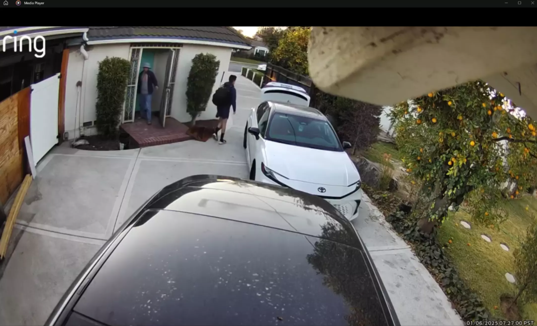 8:19,本声称送完孩子要直接去上班的赖尹,其车辆却返回社区(Ring摄像头影像显示)。