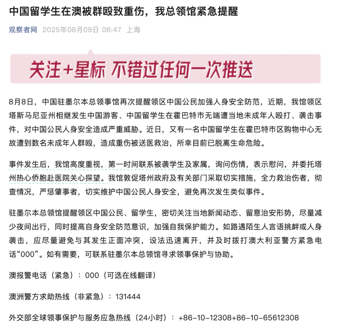 收藏突发! 澳洲中国留学生被大批teenager群殴! 头骨碎裂进ICU抢救30小时, 惊动使领馆央媒