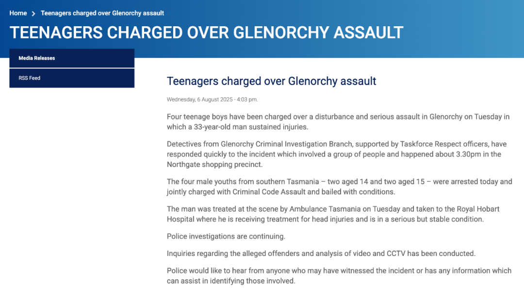 更让人担心的是,这并非孤立事件。Glenorchy一带暴力案件频发,居民早已怨声载道。当地议员直言,人们已经厌倦了这些青少年违法却屡屡逃脱惩罚的局面。