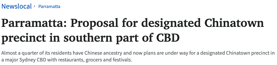 西悉尼商业局执行董事David Borger更是直言:“Parramatta早就该有唐人街了!”
