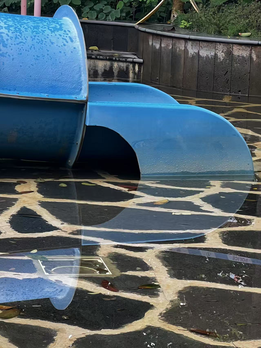 事发后第三天,家属曾与警方一同到现场进行模拟测试,孩子父亲还亲自下场试验。“在动态系统和排水系统全部开启的情况下,并未出现卡住的情况。可能是‘大杯子套小杯子’ —— 当身体与管道形成这种嵌套时,可能会产生抽真空效应,进而身体被吸附卡住。”