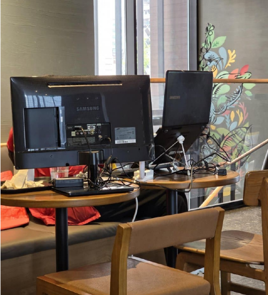 此前某星巴克门店曾出现顾客在桌上架设隔板打造私人空间后使用平板电脑和键盘的情况,在网络社区引发热议。