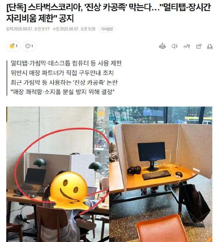 星巴克判断此类行为可能对前来享用咖啡的其他普通顾客造成影响,因而决定实施限制措施。星巴克韩国相关人士表示:“此举旨在为来访顾客提供舒适便捷的门店体验,同时预防长时间离座时物品被盗或丢失的风险,因此决定实施顾客引导措施。”