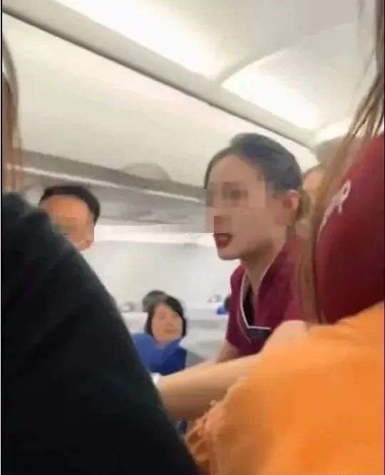 机舱内瞬间乱作一团,空乘和其他乘客试图劝阻,但场面依然混乱。视频中,还能听到女乘客喊:「不要推我,打110报警!」