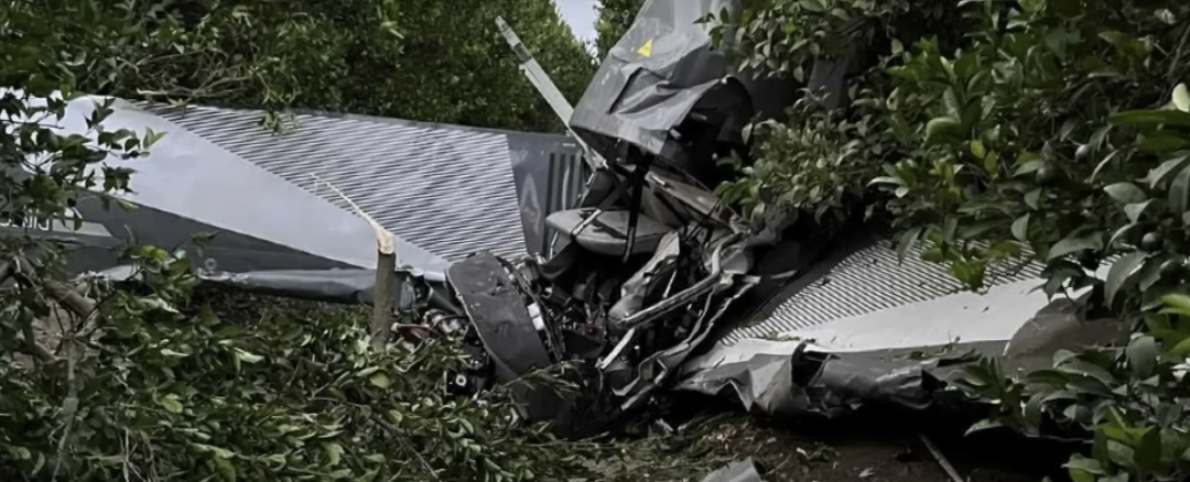 现场视频显示,这架小型飞机在低空突然失去高度,一头栽进了跑道旁的柑橘园里。