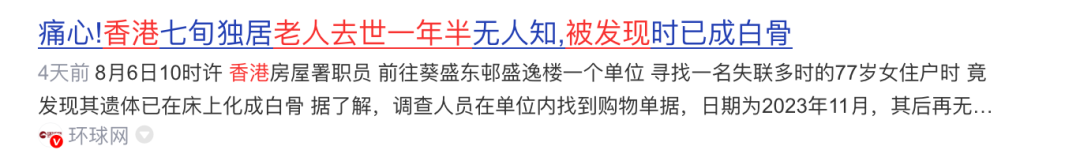 香港独居老人家中变白骨事件,最恐怖的是其中的人性…