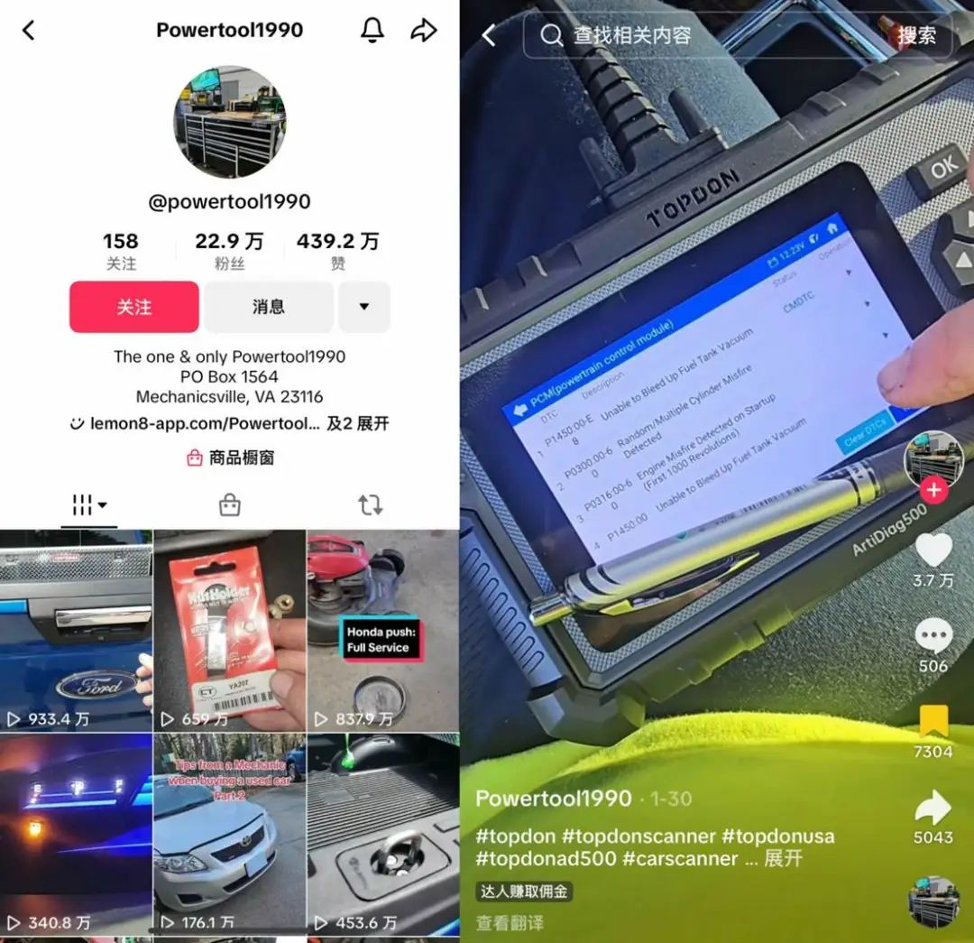 近23万粉丝的汽修达人@Powertool1990,展示如何用TOPDON在家识别出老车故障。