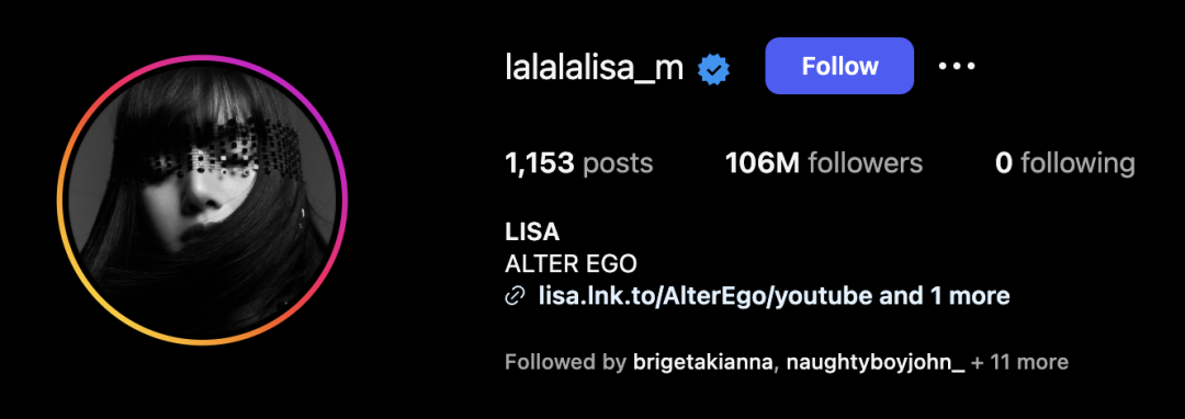 她的个人影响力与日俱增,2023年圣诞节时,LISA的Instagram粉丝数突破亿,成为韩国明星中粉丝最多的艺人之一。