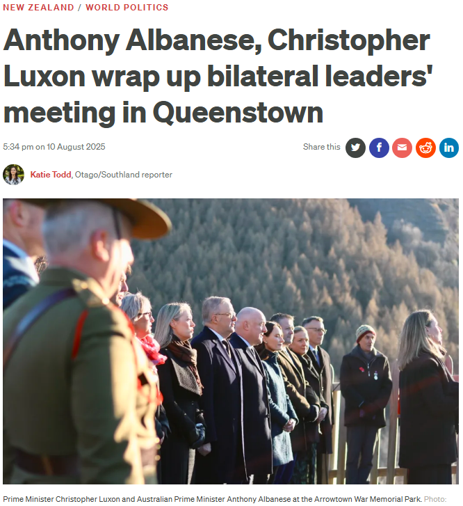 Luxon特别强调:“澳大利亚不仅是新西兰至关重要的经济伙伴,更是我们唯一的正式盟友。”