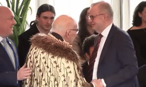 峰会现场还上演了一个轻松插曲:当Albanese尝试行毛利传统的碰鼻礼时,Luxon总理略显局促地婉拒。