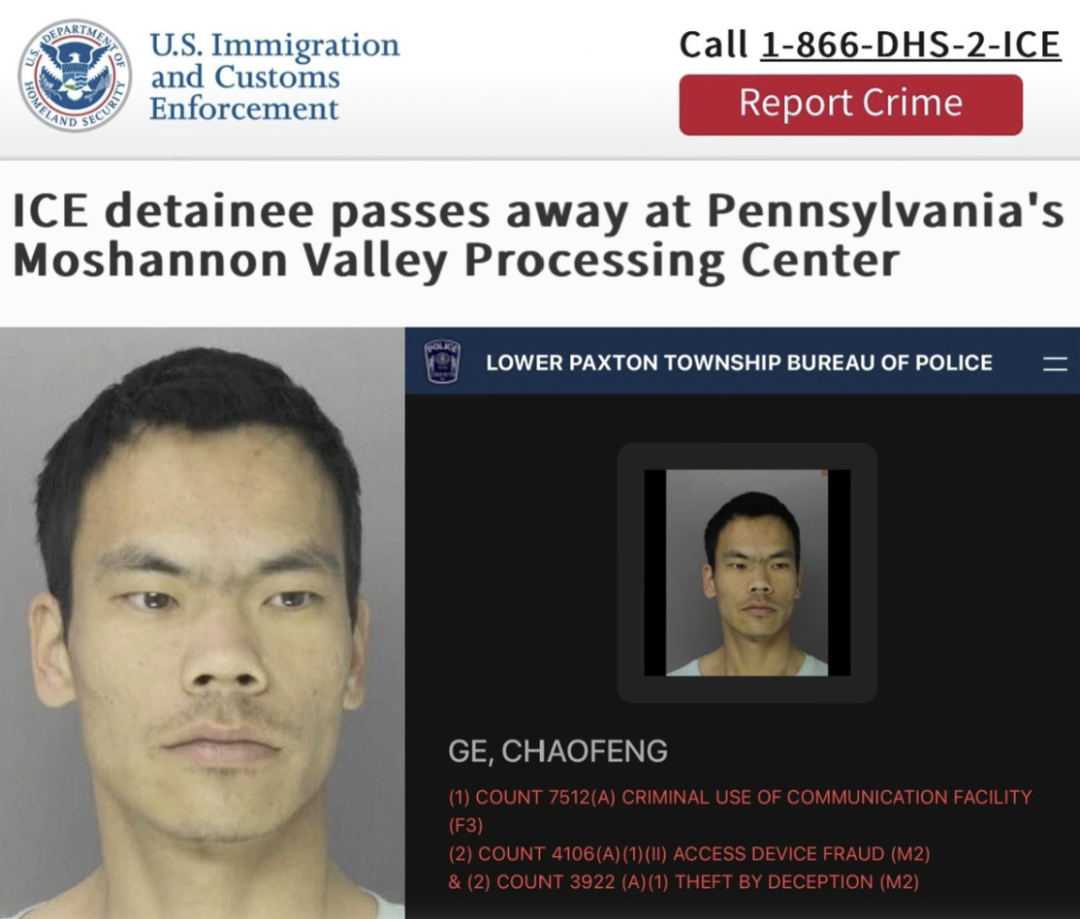 7月31日,葛超峰在法庭上承认与诈骗有关的多项罪名,法官分别判处6至12个月不等的刑期。刑事审理结束后,他立即被ICE接管,送往位于宾州的莫沙农谷处理中心——这是关押待遣返移民的民营拘留设施。
