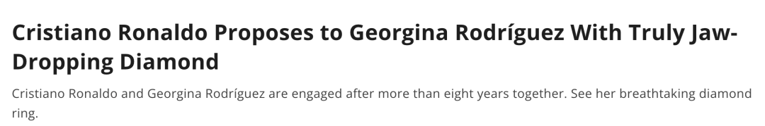 8月11日,葡萄牙足球巨星克里斯蒂亚诺·罗纳尔多(Cristiano Ronaldo,简称C罗)与阿根廷-西班牙模特乔治娜·罗德里格斯(Georgina Rodríguez)正式官宣订婚!