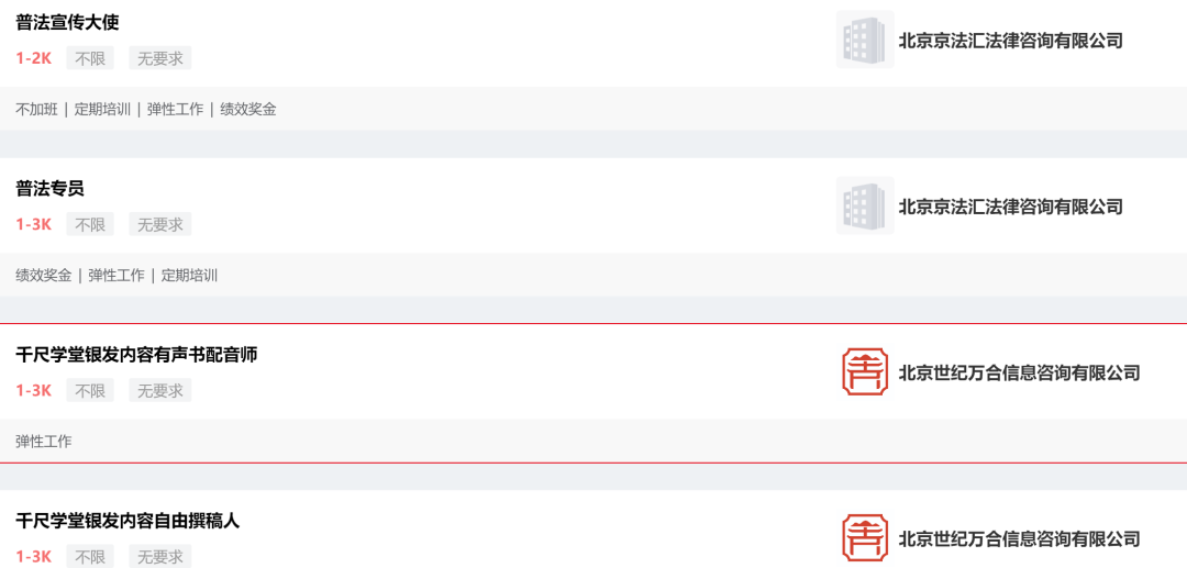 网站信息显示,其还有多个针对老年人的岗位在招聘中。