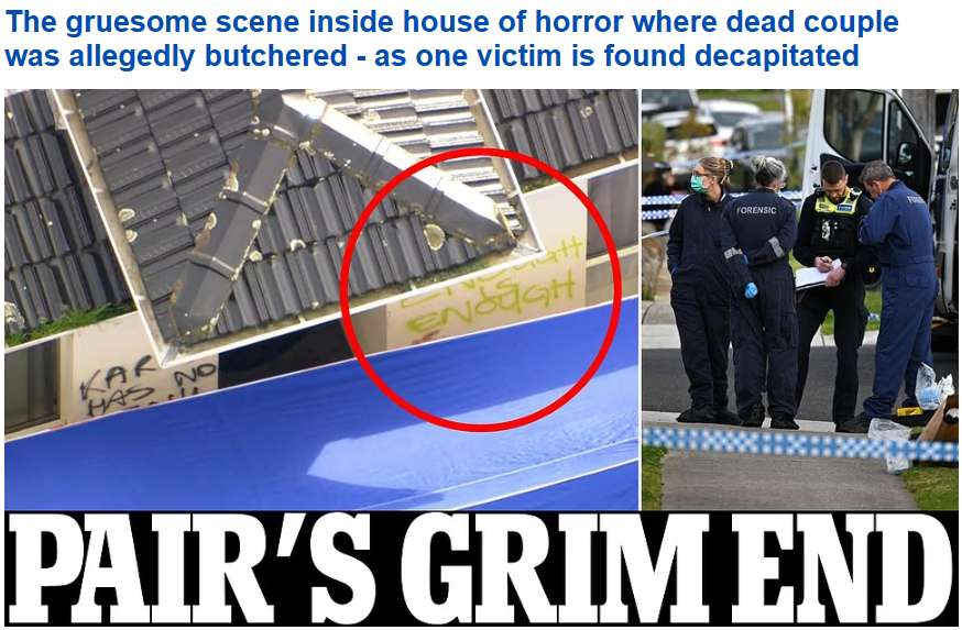 就在今天,澳媒报道证实,警方于昨晚接报后在Mount Waverley Adrienne Crescent一处住宅发现两具尸体,均为白人男女,男子疑遭斩首,头颅被插在棍上,旁边放着一名女子的尸体。两人尚未正式公布身份。