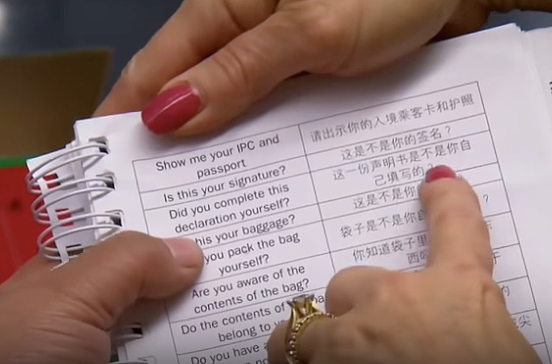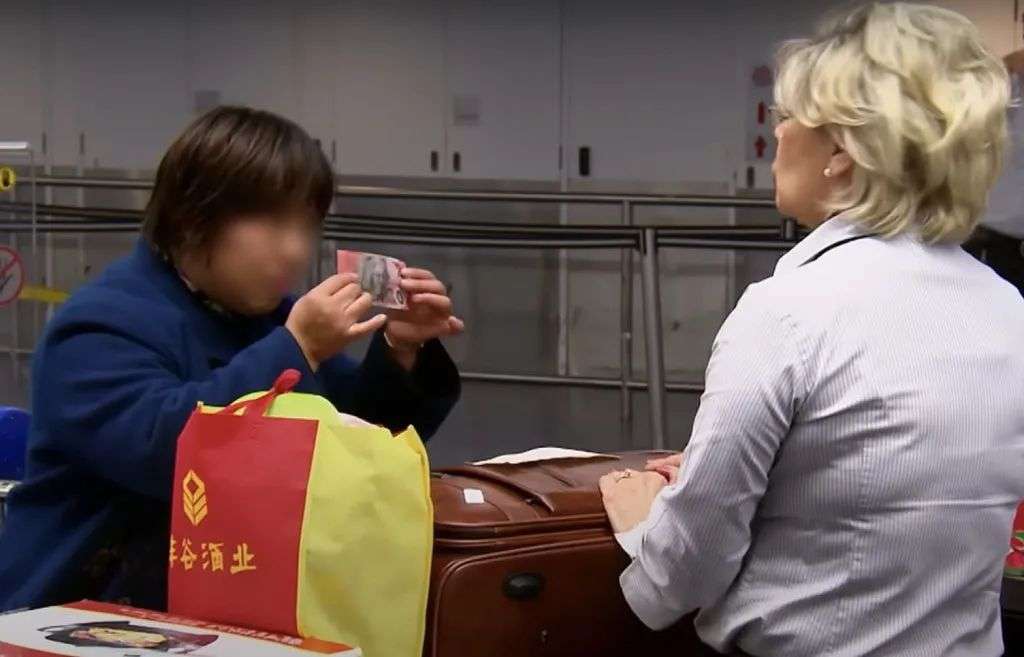 老练的工作人员一边查看,一边问她是否有申报。大妈显得有些慌乱,用中文嘀咕了一句:“忘记了,这脑子……”