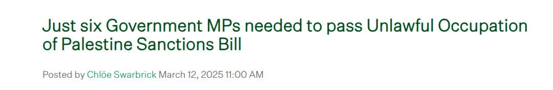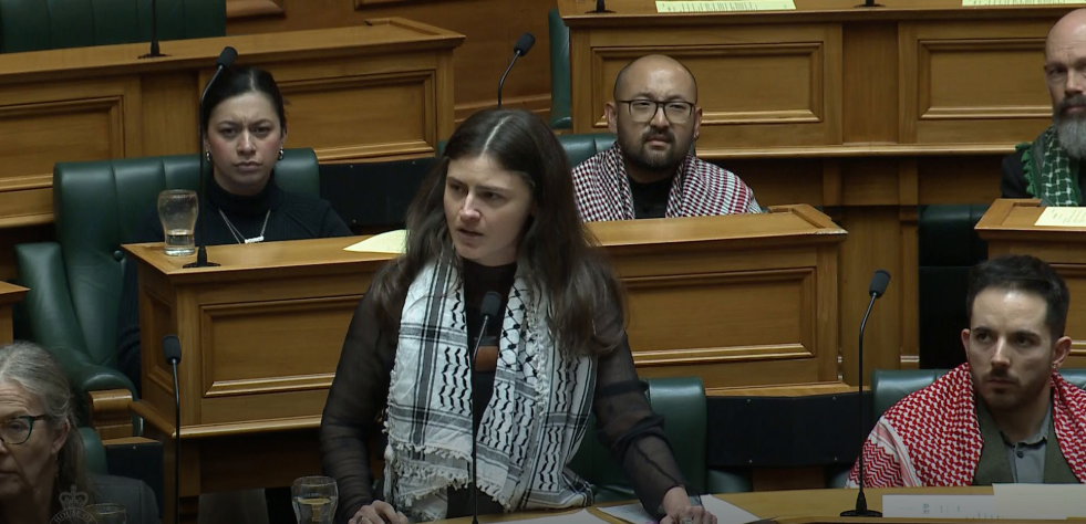 辩论中,Swarbrick呼吁NZ政府接纳绿党的法案,以“制裁以色列的战争罪行”——该法案由绿党在3月提出,获得新西兰工党和新西兰毛利党支持,还需要另外6名议员支持才能通过。