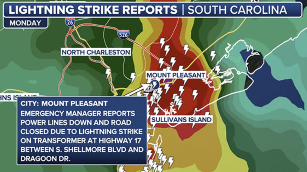 事实上,7月底至8月初的这短短一周内,南卡州一共记录了近10万次闪电,仅两天的闪电次数就接近3万次。