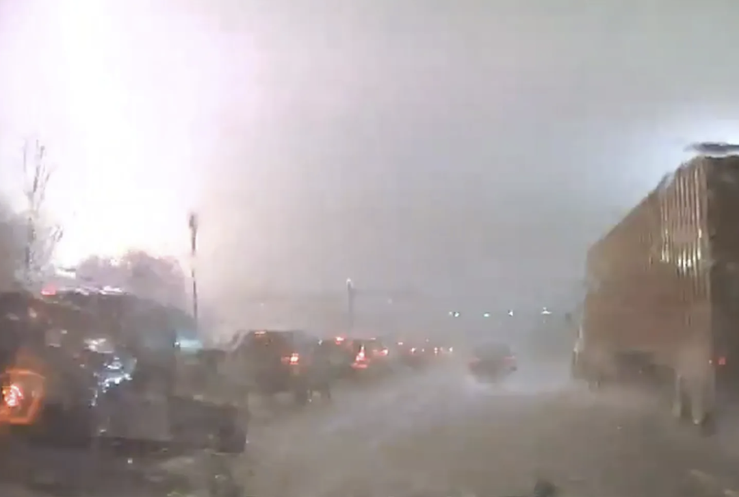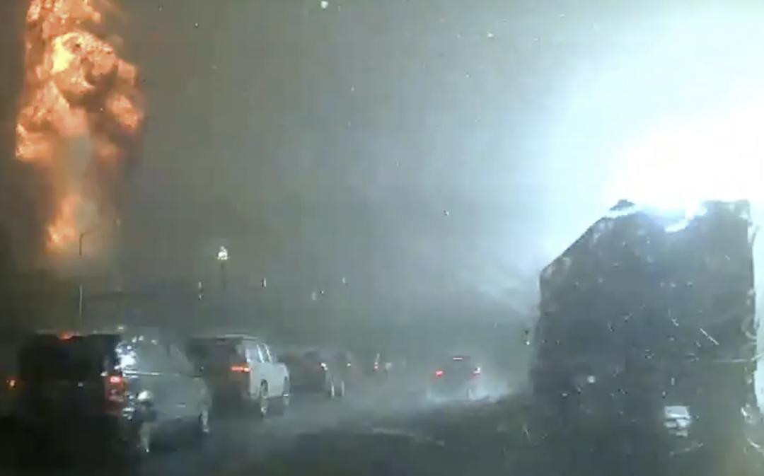 这如同灾难电影中的一幕,被巡逻警车的行车记录仪拍下来,震惊了不少人。