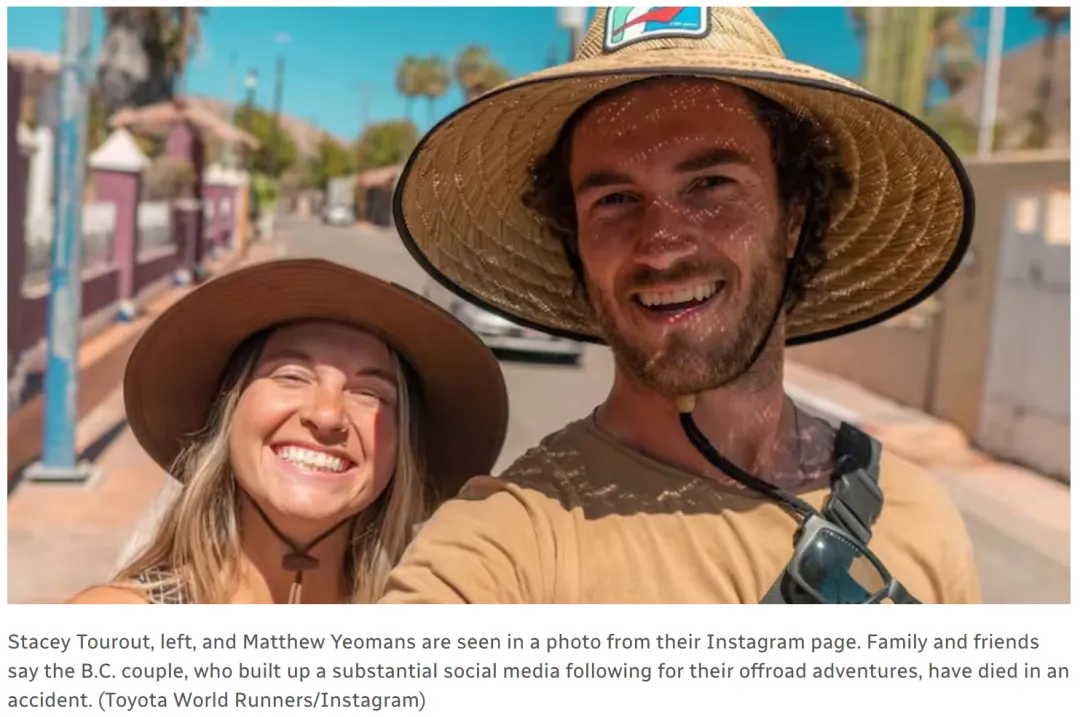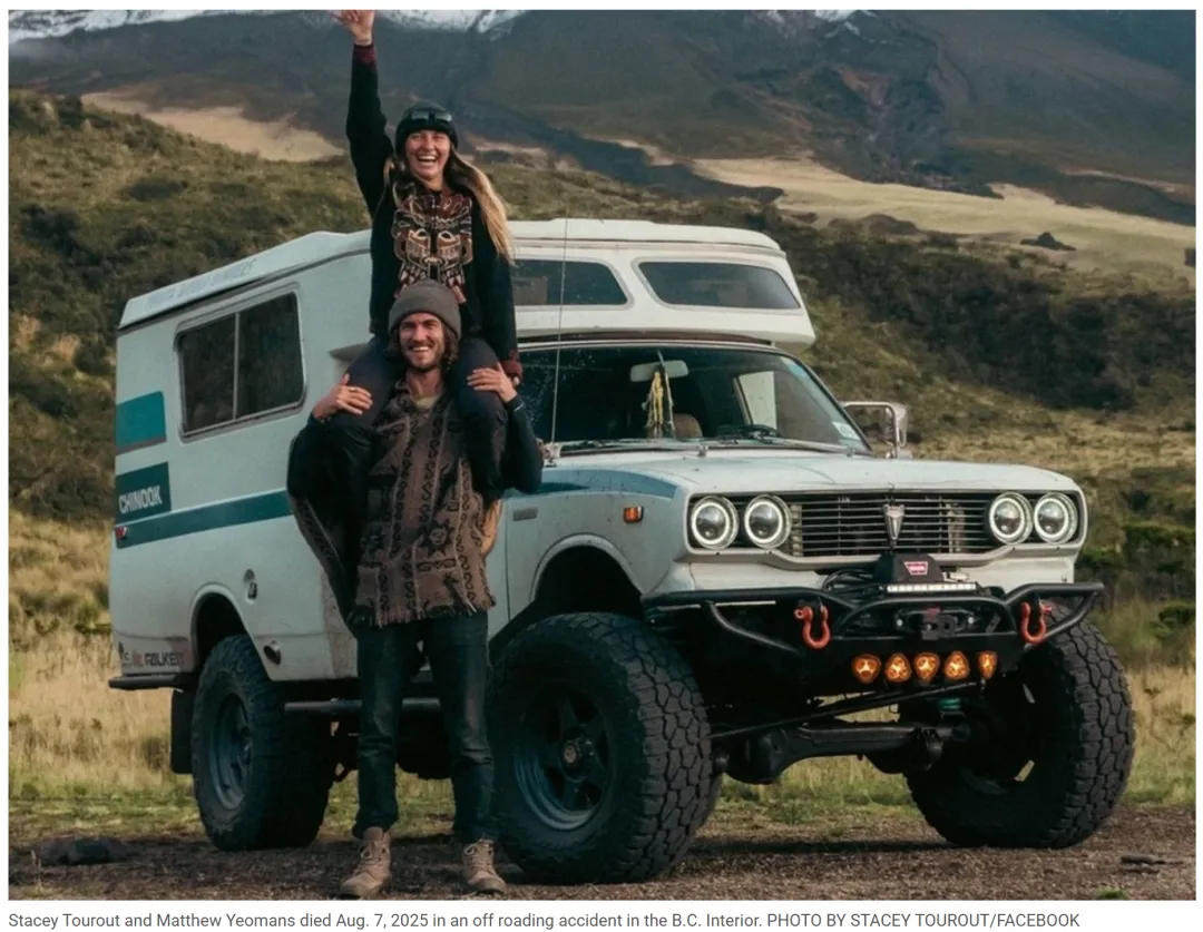 一对来自纳奈莫的网红夫妇,上周在BC省山区越野探险时出了严重车祸,双双不幸遇难。这场意外发生在8月7日,让整个社区都震惊了。