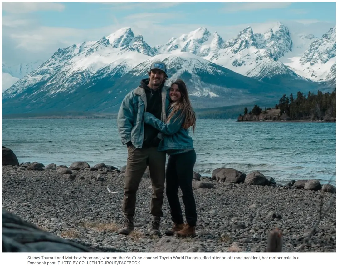 遇难的是斯泰西·图鲁特(Stacey Tourout)和马修·约曼斯(Matthew Yeomans),他们的YouTube频道“Toyota World Runners”有超过20万订阅者。