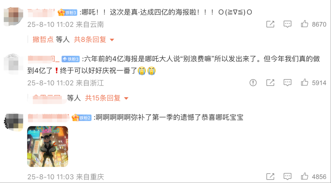 譬如电影《哪吒之魔童闹海》,每逢10亿里程碑,都会采用有别于导演手绘的专属样式,将仪式感推向极致。