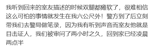 这位网友和室友也因为是目击证人被带到警局做笔录长达两小时。