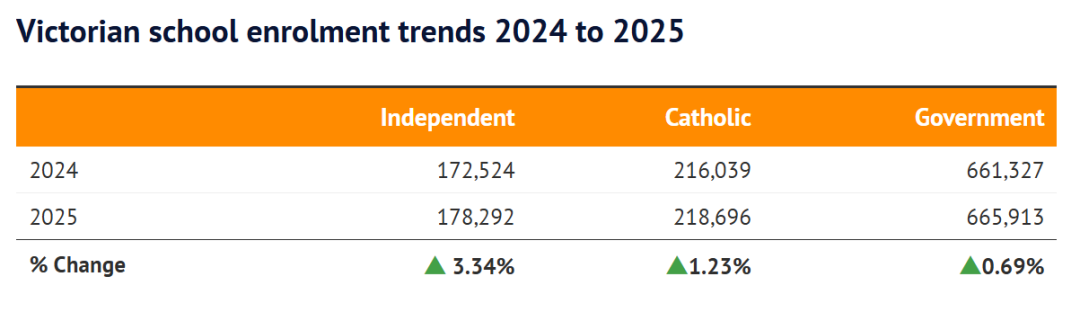 最新数据显示,维多利亚州独立学校(independent sector)的入学人数同比增长3.34%,远超天主教学校(Catholic schools)1.2%和公立学校(government schools)0.7%的增速。