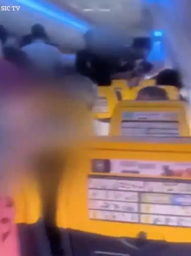 昨晚近7点,这架航班刚刚在里斯本机场着陆,机舱内便爆发了混乱场面。现场视频显示,乘客们站在过道中相互推搔,惊恐的儿童在背景中不断尖叫哭泣。