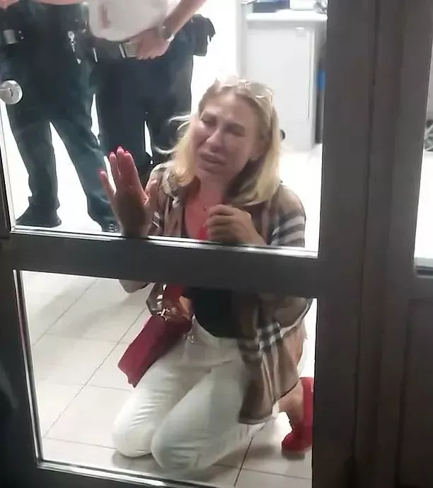 一名女乘客因手提行李超重被禁止登机,当场崩溃大哭,甚至跪在地上用拳头敲打舱门。机场工作人员告知她的手提行李尺寸超标,需要支付额外费用。