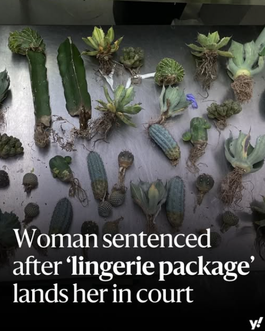 去年11月,她从香港寄来的包裹在悉尼被查获,里面装着57株从中国来的多肉和仙人掌,但外包装却谎报成“鞋子和内衣”。